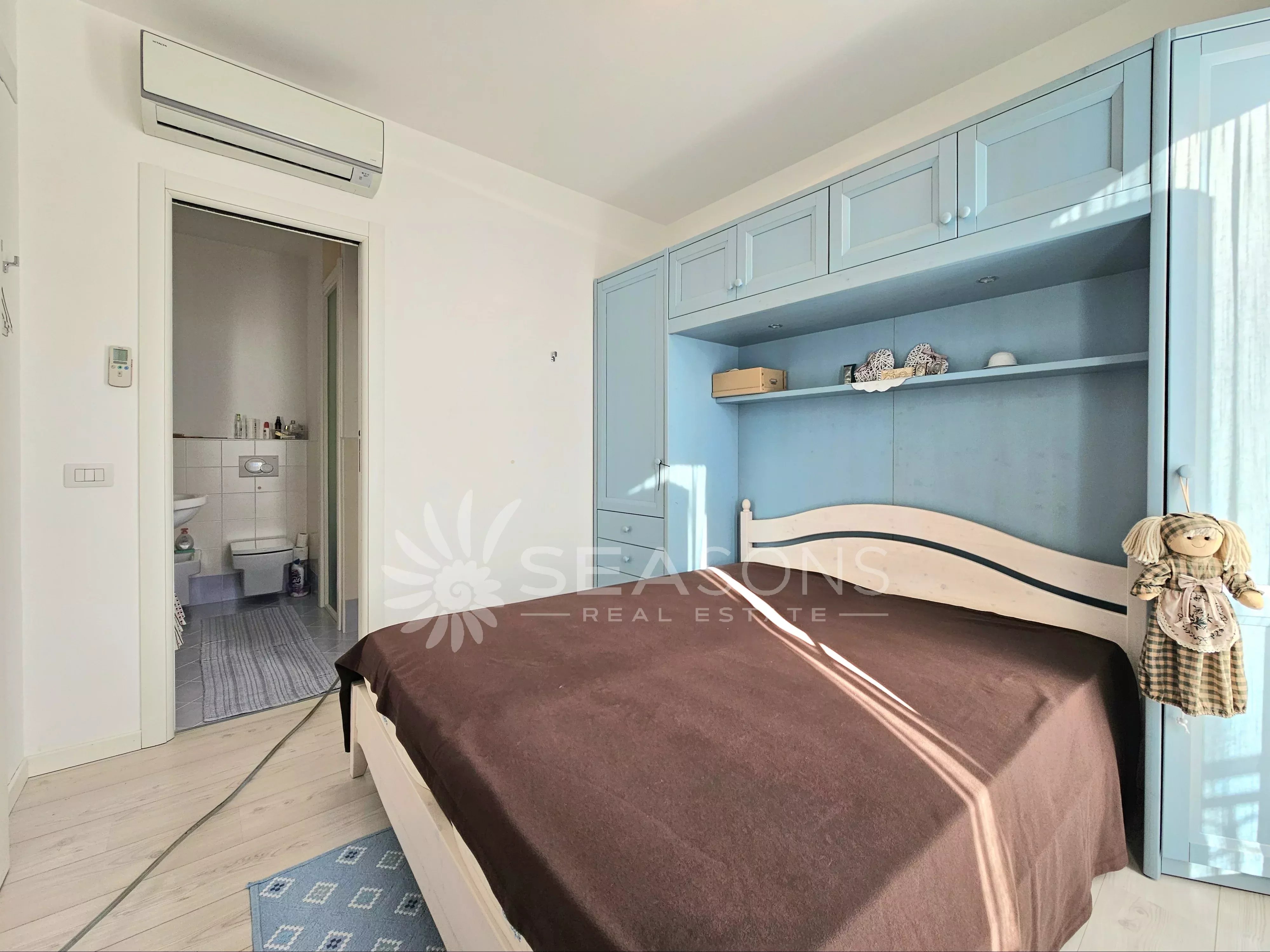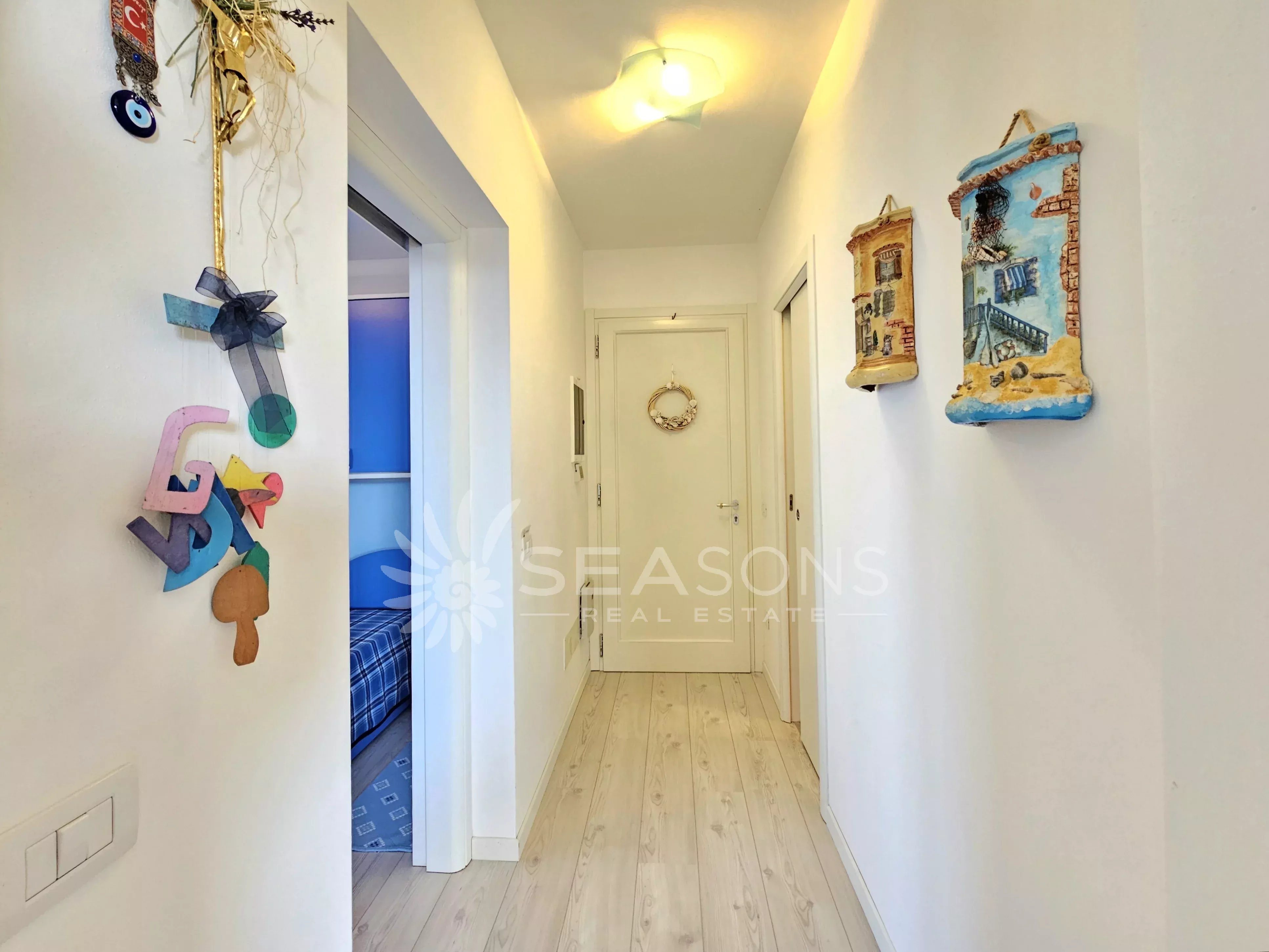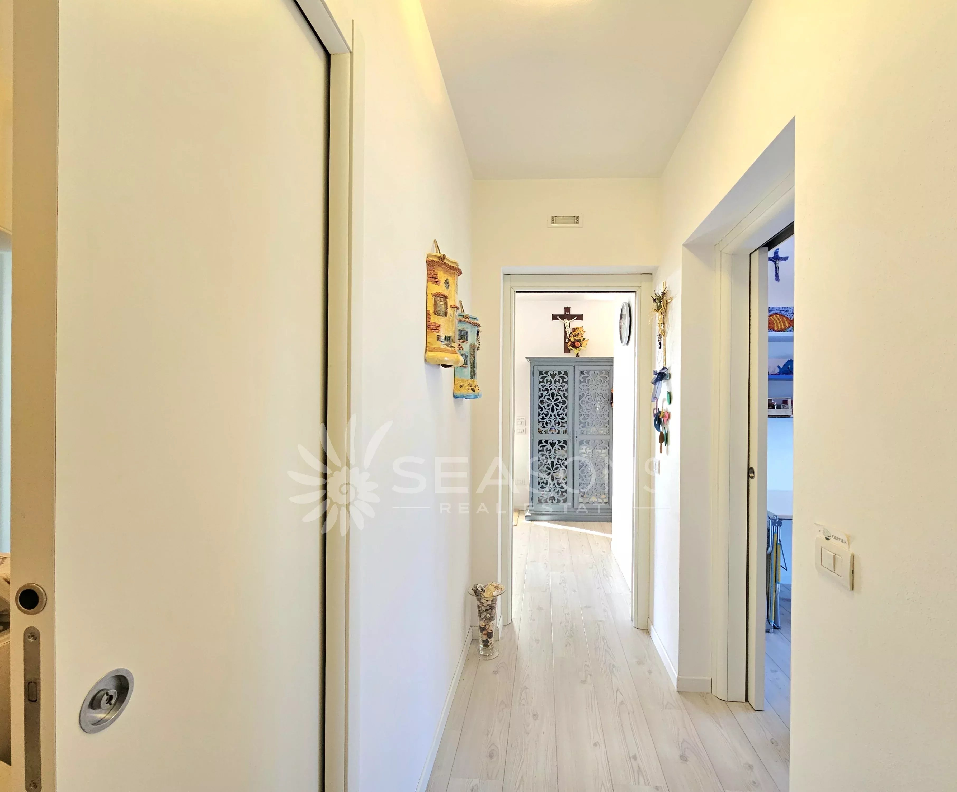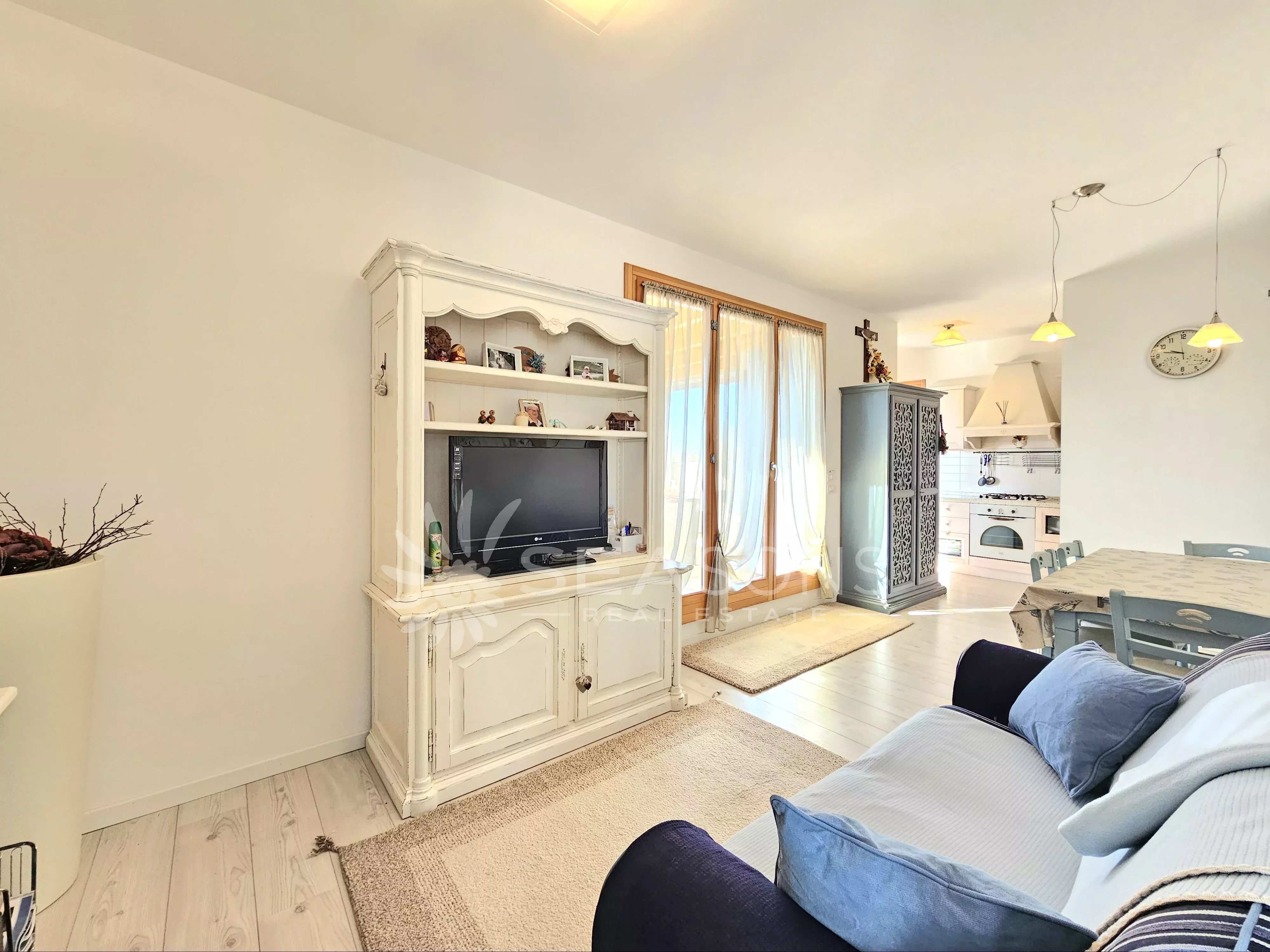 L'immobile si trova in ottime condizioni ed è composto da soggiorno con cucina semi separata collegato alla comoda e grande terrazza con vista piscina, disimpegno, due camere da letto, due bagni;