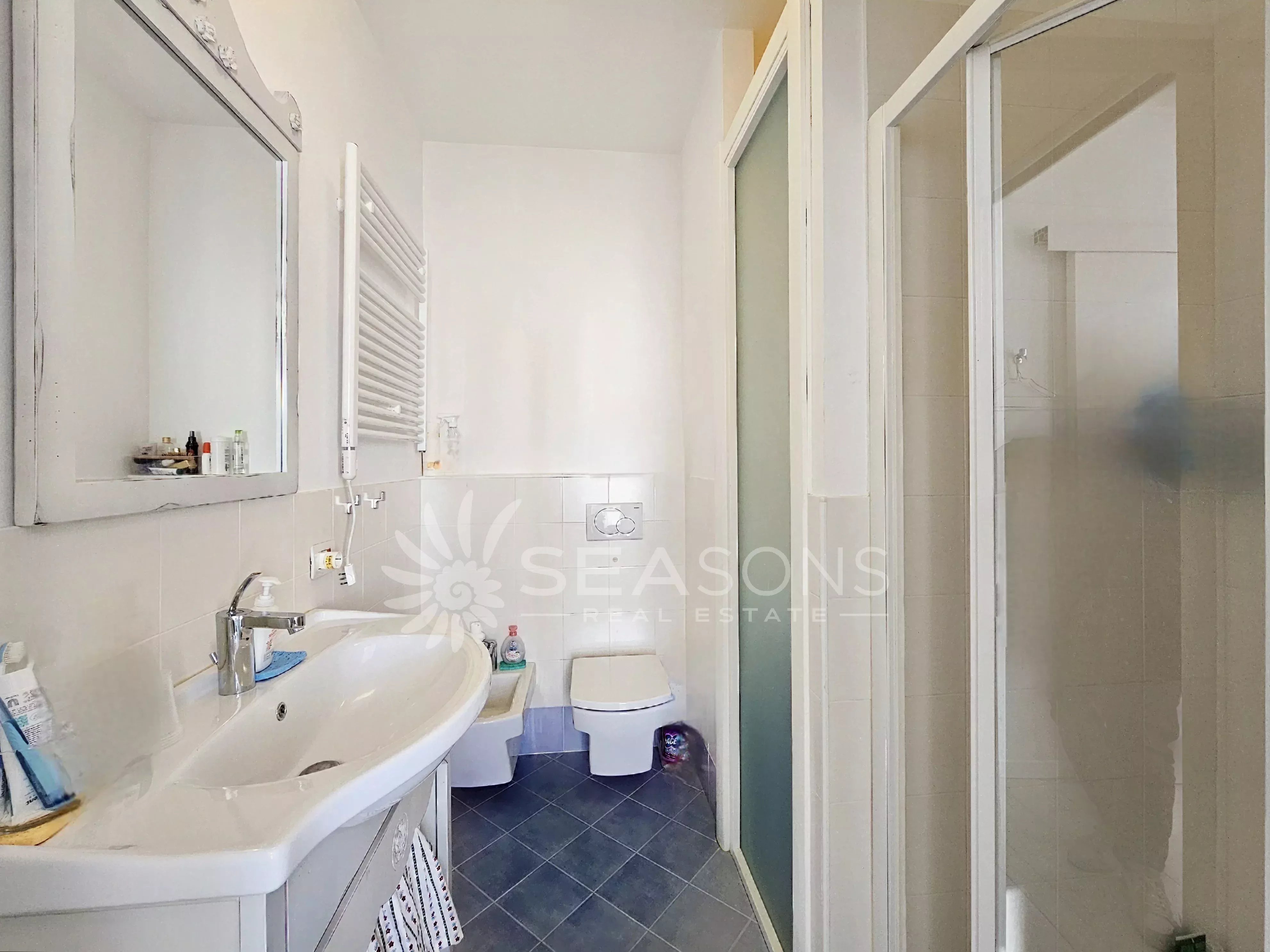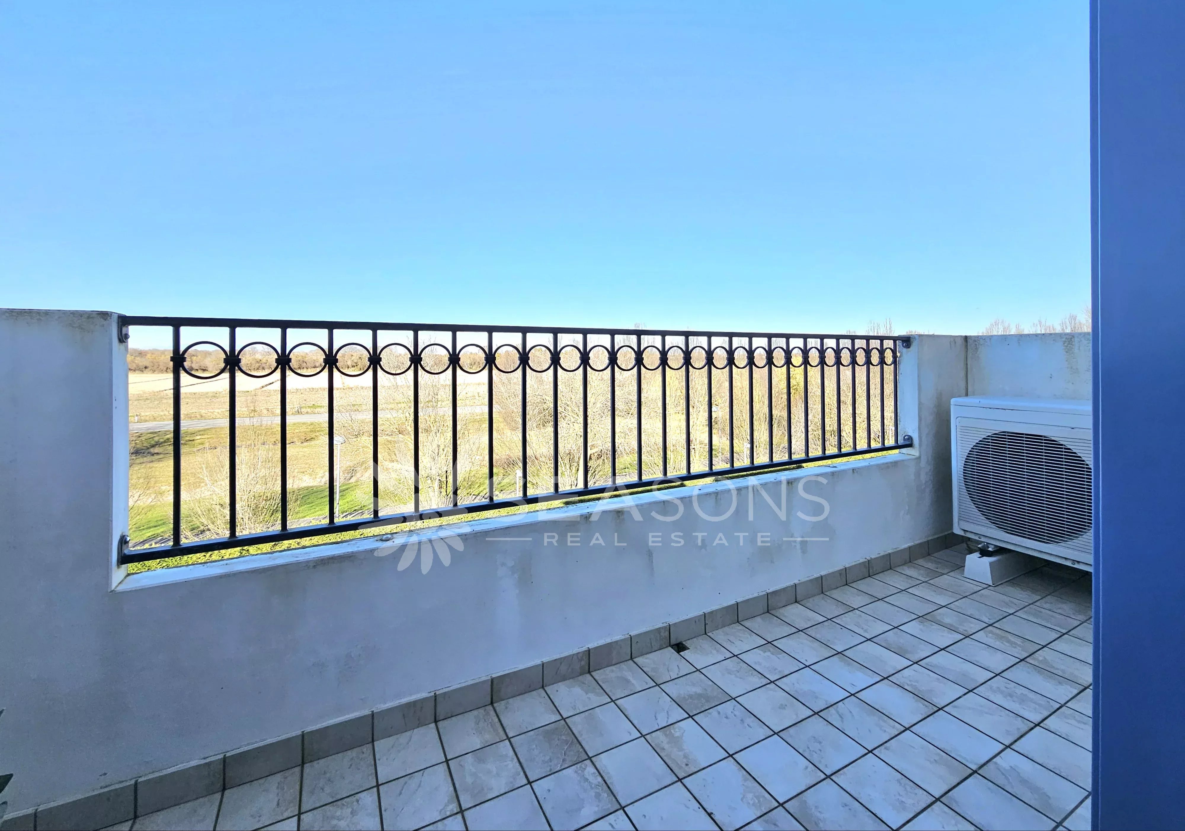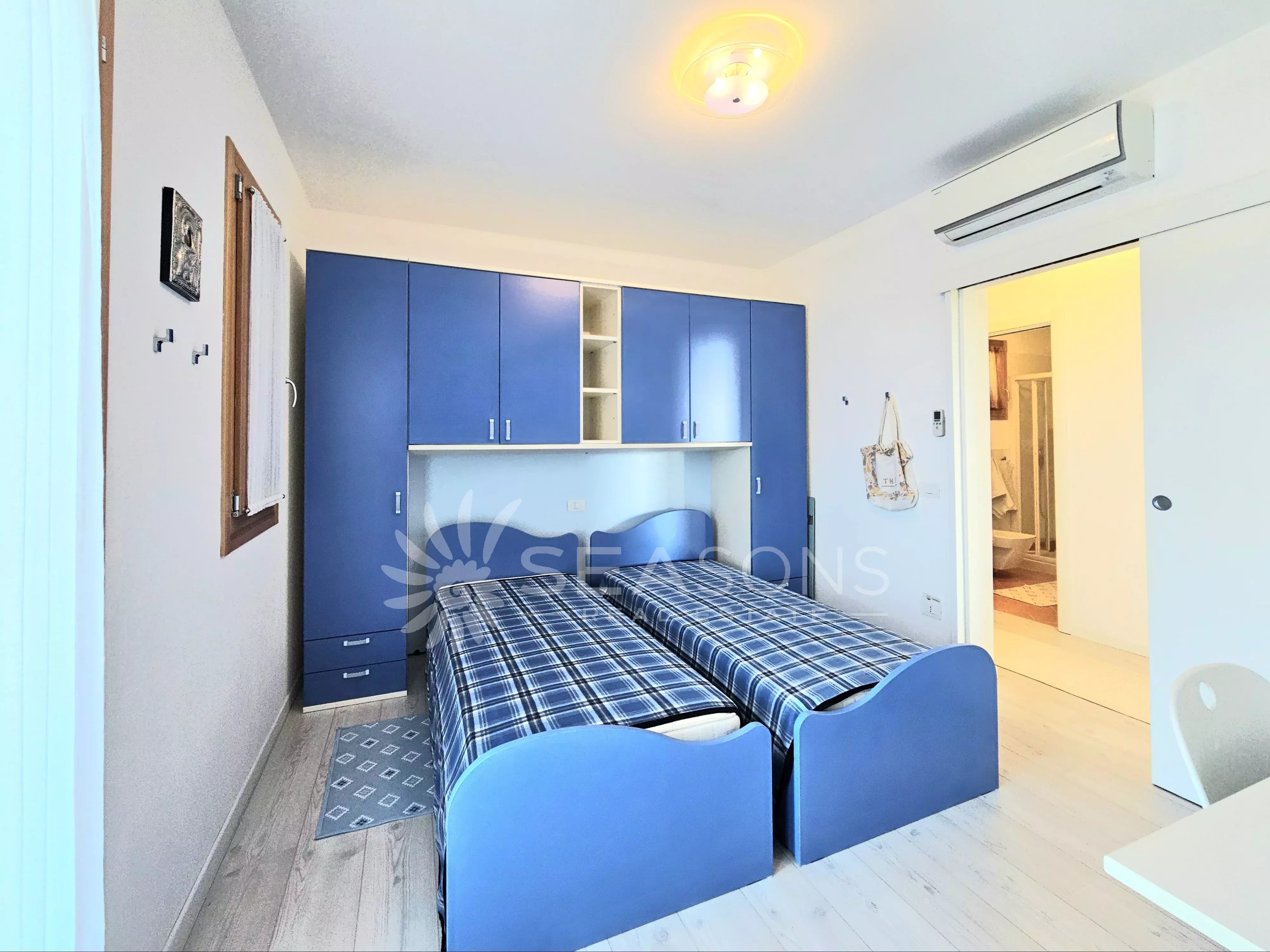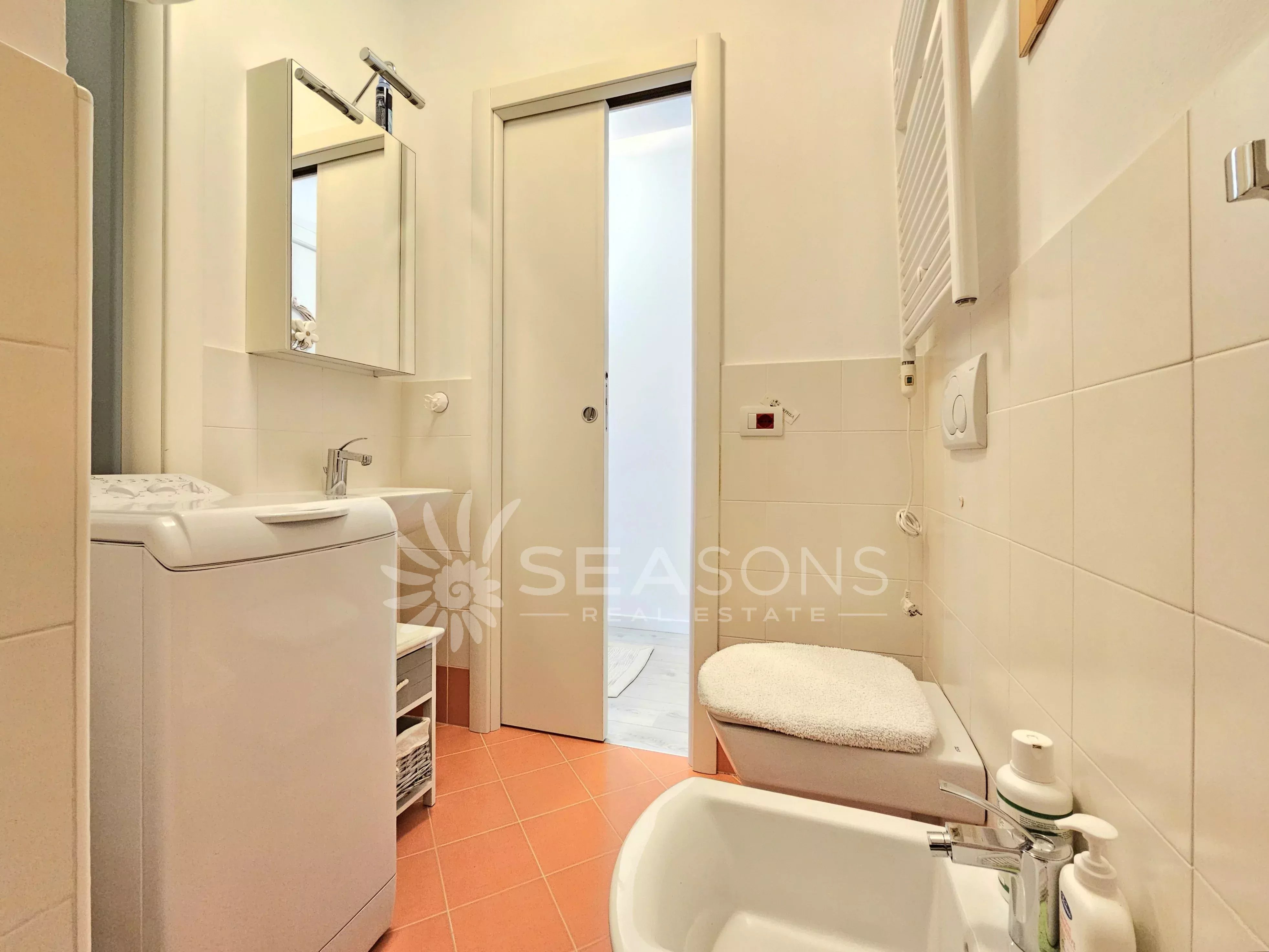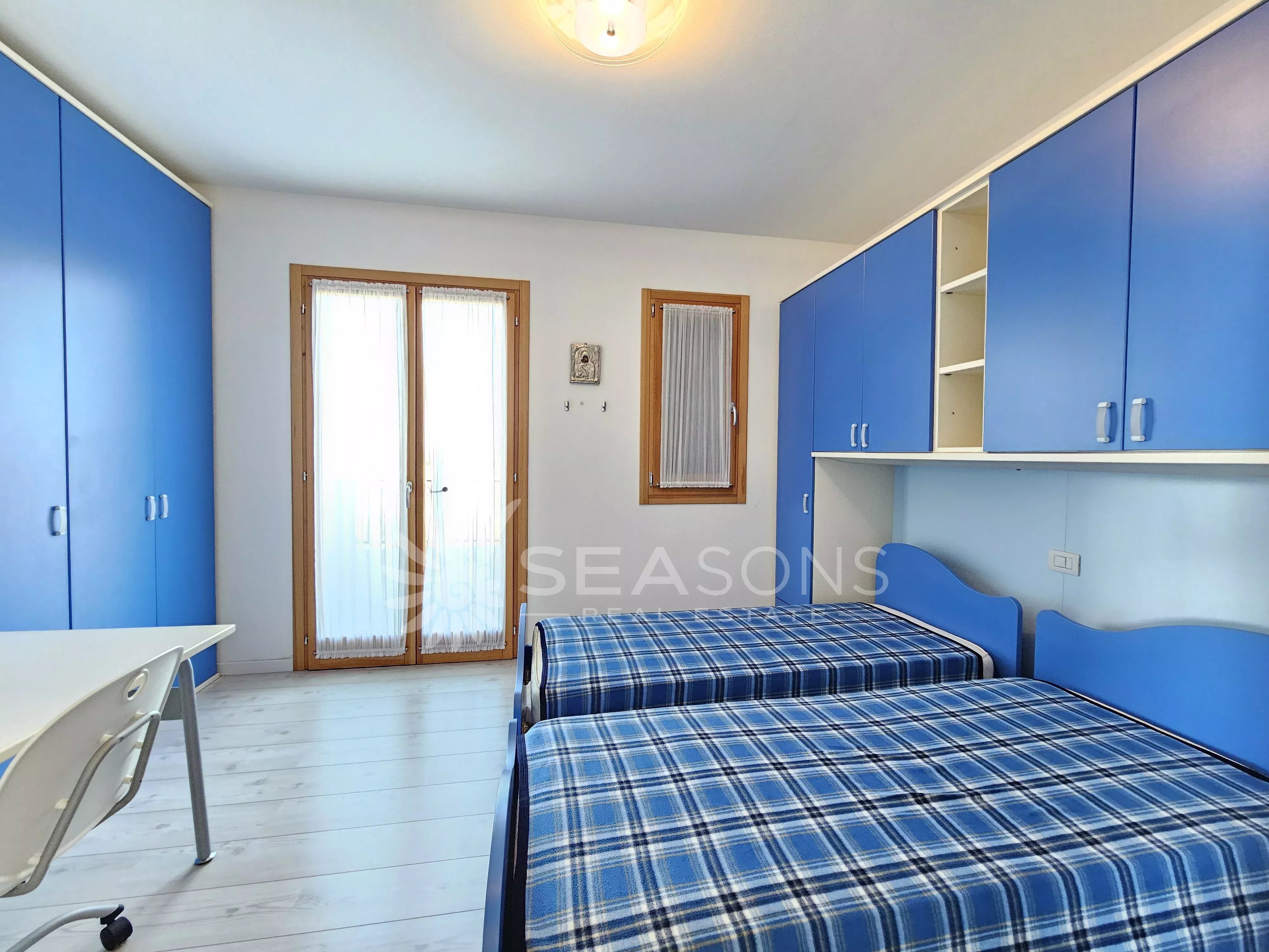 L'immobile si trova in ottime condizioni ed è composto da soggiorno con cucina semi separata collegato alla comoda e grande terrazza con vista piscina, disimpegno, due camere da letto, due bagni;