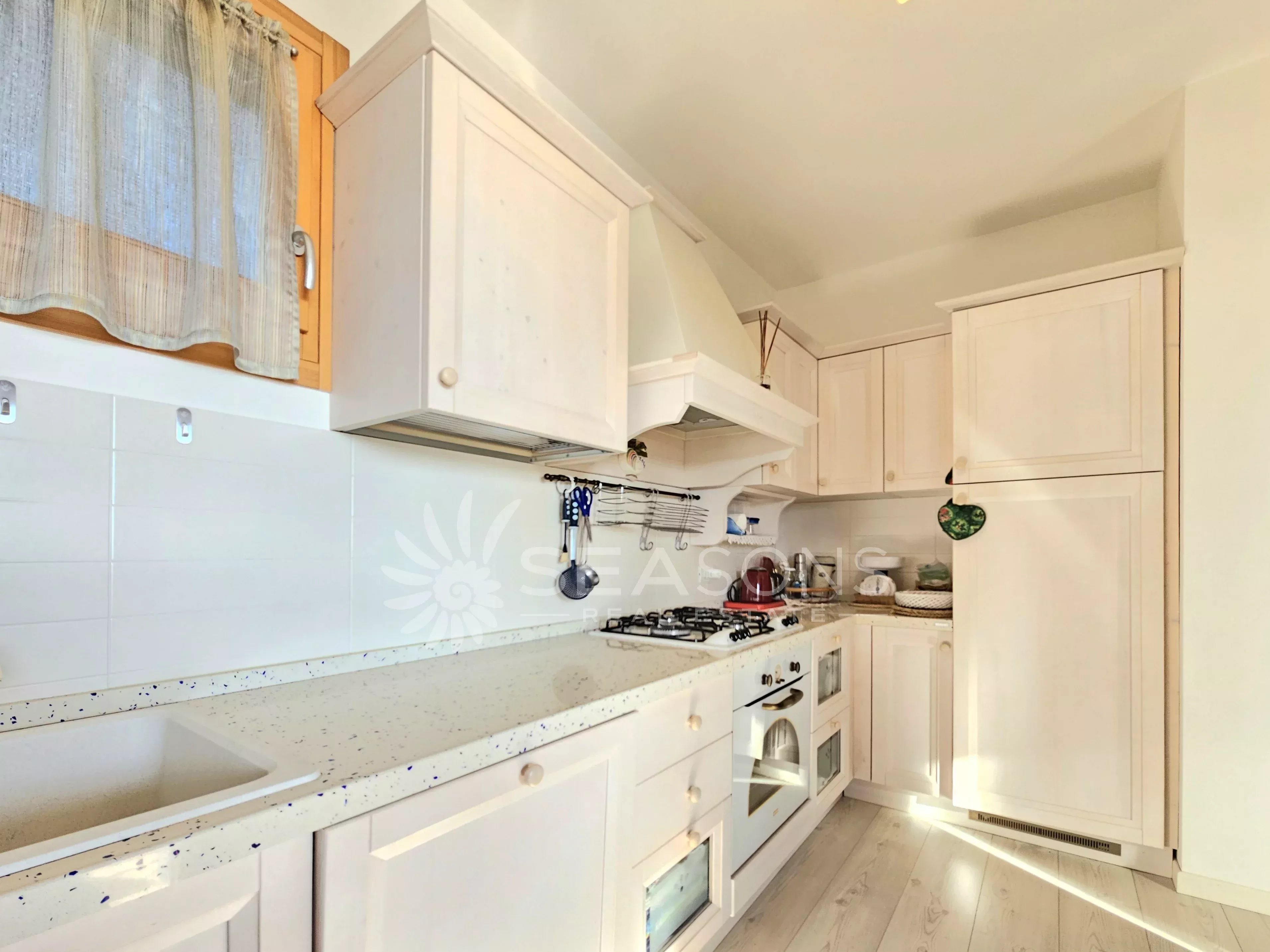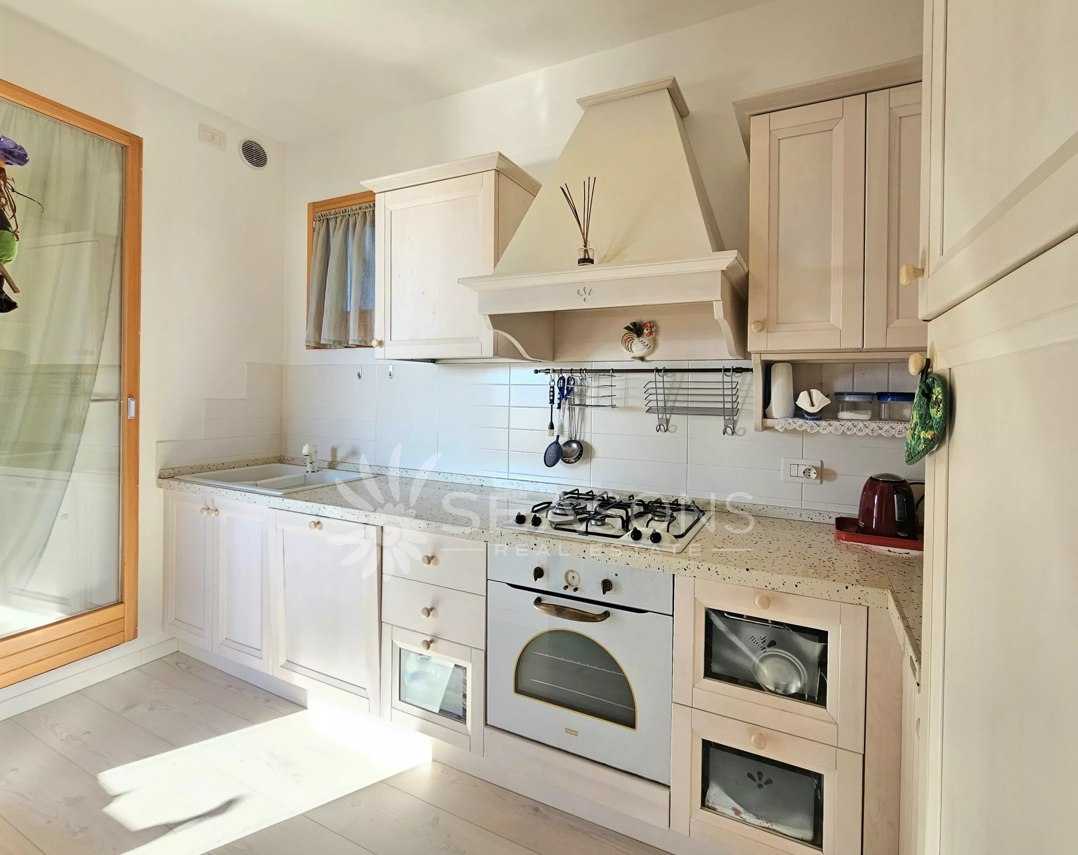 Accessori immobile: riscaldamento in pompa di calore, aria condizionata con tre split, infissi legno con vetrocamera, cassaforte, zanzariere, lavastoviglie, wi-fi.